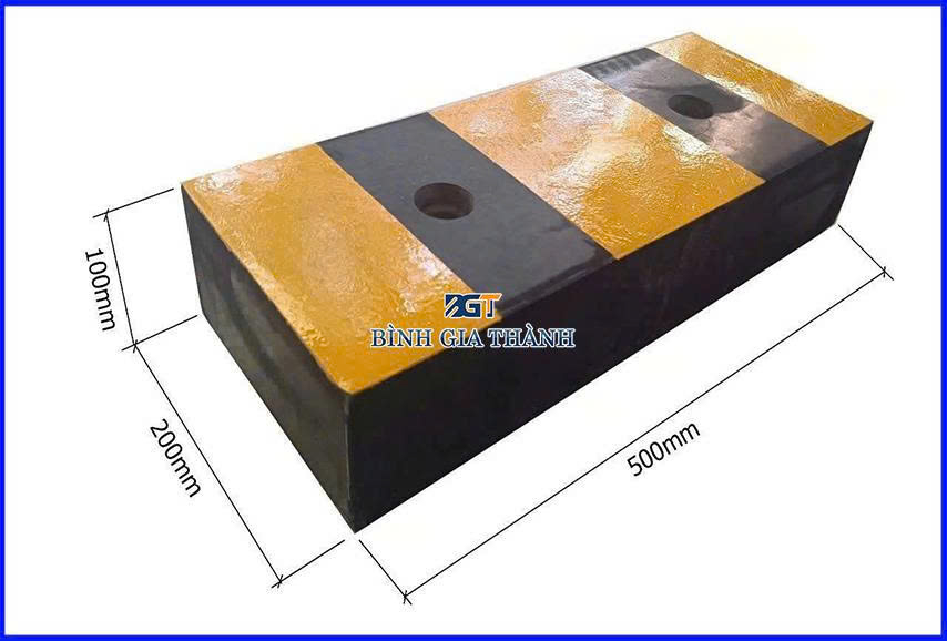- Cao su Mật độ Cao và Đúc Khối: Giống như dock leveler bumper, chúng phải là cao su đúc khối (Solid Rubber) từ các hợp chất chịu mài mòn cao (thường là SBR hoặc cao su tái chế) với mật độ cực cao.
