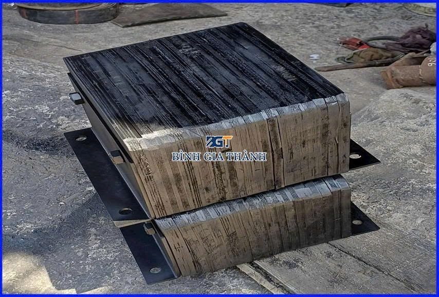 Các tấm thép mỏng: Các tấm thép này được đặt xen kẽ giữa các lớp cao su, giúp tăng cường độ cứng và khả năng chịu nén của toàn bộ khối.