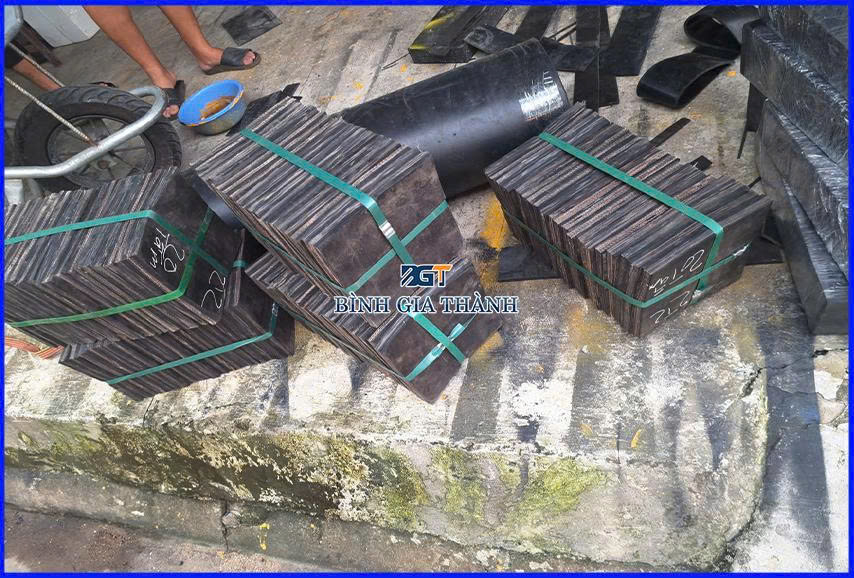 Làm gối cầu hoặc đệm giảm chấn tại các khe co giãn của công trình giao thông. Khả năng chịu tải cực lớn của lớp bố giúp tấm cao su chịu được sức nặng của các dòng xe tải lưu thông liên tục mà không bị biến dạng.