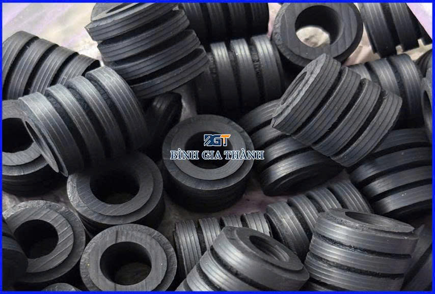 Thường được đúc từ cao su tự nhiên (NR) hoặc cao su tổng hợp (SBR, NBR) với hình trụ tròn hoàn hảo. Hình dáng tròn giúp phân bổ lực ép đều 360 độ xung quanh tâm, tránh hiện tượng tập trung ứng suất tại các góc cạnh như các loại đế vuông.