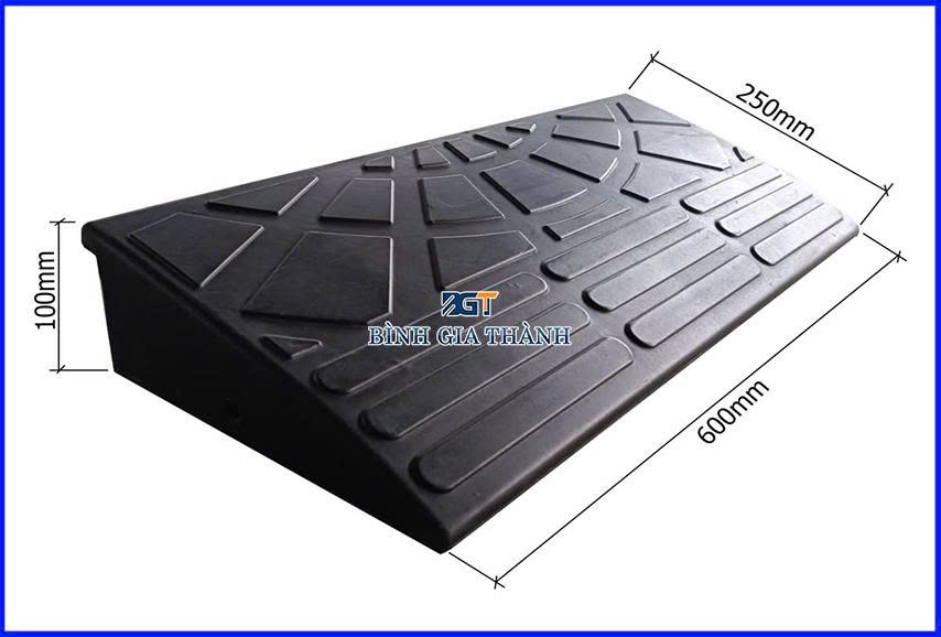 Đây là dòng sản phẩm được ưa chuộng nhất nhờ độ bền vượt trội. Được sản xuất từ cao su tái chế cường độ cao hoặc cao su tổng hợp, tấm dốc này có khả năng chịu tải trọng cực lớn, từ xe máy cho đến các dòng xe tải nặng 30-40 tấn. Đặc tính đàn hồi tự nhiên của cao su giúp triệt tiêu hoàn toàn tiếng ồn khi xe cán qua, đồng thời bảo vệ lốp xe không bị biến dạng. Bề mặt thường được đúc các vân nổi hình quả trám để tăng độ bám, chống trượt tuyệt đối ngay cả trong điều kiện mưa bão.