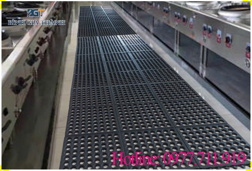 Thảm cao su lót sàn chống trượt là sản phẩm chuyên dùng để lót sàn bếp, quầy bar , nhà xưởng , hồ bơi, dốc tầng hầm cho xe lên xuống chống trượt, khu vực ngập nước, dầu mỡ, xưởng cơ khí...
