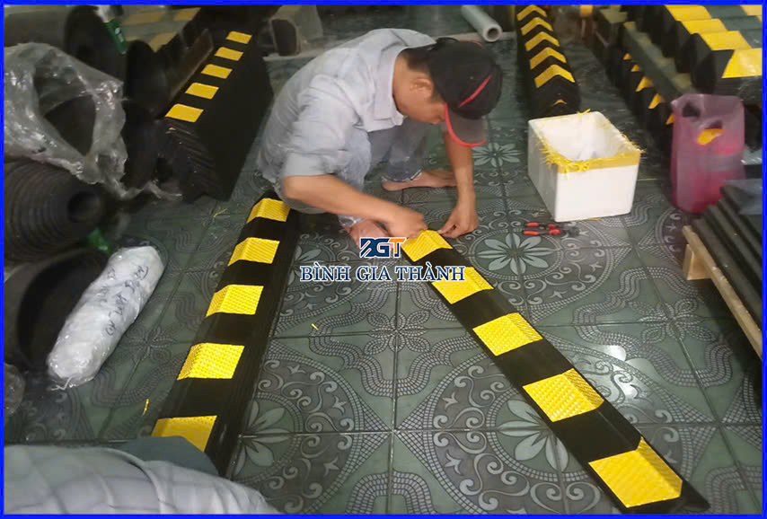 Sản phẩm thường được định vị sẵn các lỗ bắt vít trên thân. Việc thi công chỉ mất vài phút với máy khoan cầm tay và bộ tắc kê (vít nở). Bề mặt cao su trơn mịn cũng rất dễ vệ sinh, chỉ cần lau chùi định kỳ để lớp phản quang luôn sáng rõ như mới.