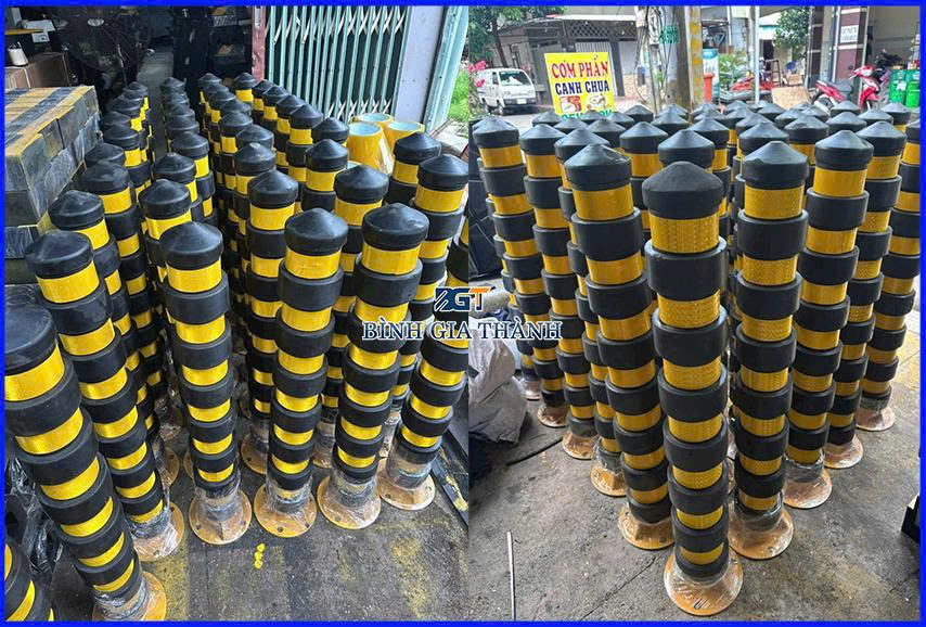 - Bọc ngoài: Một số loại được bọc lớp cao su đàn hồi (cao su đặc) hoặc nhựa composite bên ngoài. Lớp này có chức năng hấp thụ lực va chạm và giảm thiểu hư hại cho cả trụ và phương tiện va chạm.